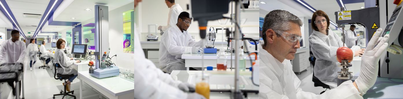 Texture analyzer, rheometer, viscometer, colorimeter, refractometer, moisture analyzer, and numerous other instruments for the physicochemical evaluation of prototypes (appearance, stability, texture, etc.).