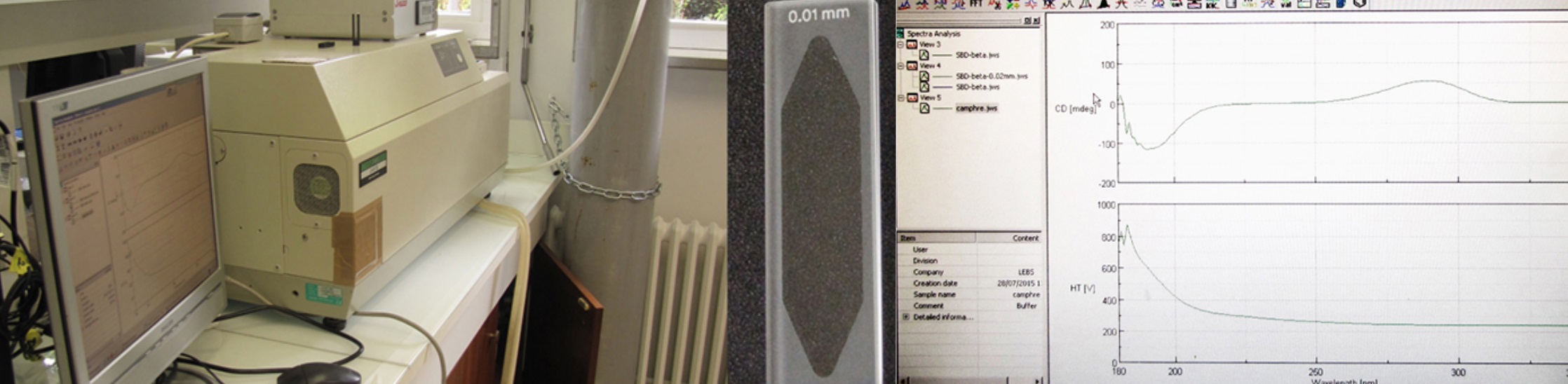 Circular dichroism allows the characterization of proteins in solution and the estimation of their content in secondary structures (alpha-helices or beta-sheets) as well as the control of their correct folding. Circular dichroism is the method of choice for the study of conformational changes, the analysis of the stability of proteins as a function of their physicochemical environment, and the binding of ligands or lipids.