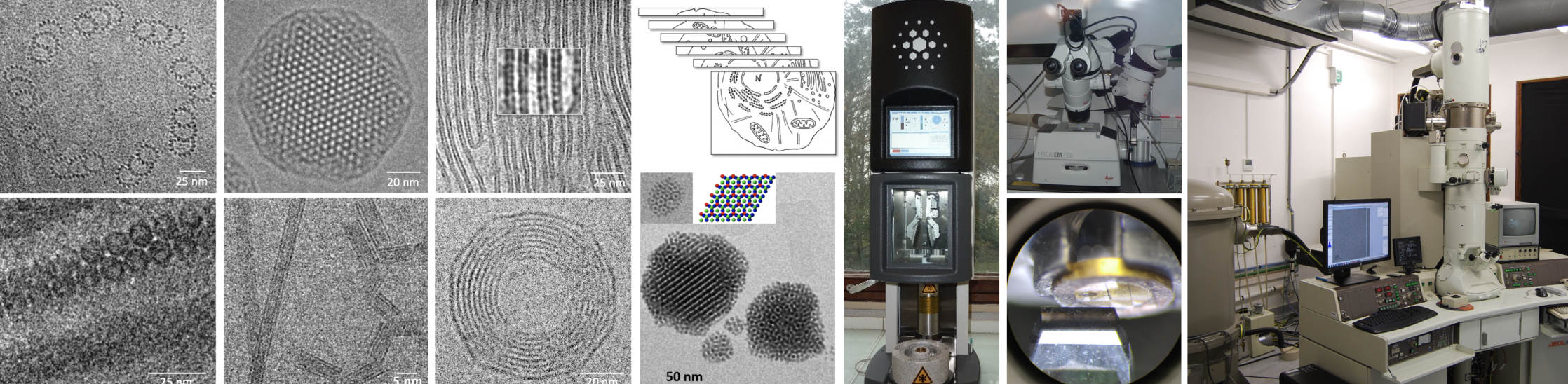 - la cryo-microscopie électronique en films minces, pour les nano-objets en solution : virus, macromolécules et complexes macromoléculaires isolés, liposomes, nanoparticules...