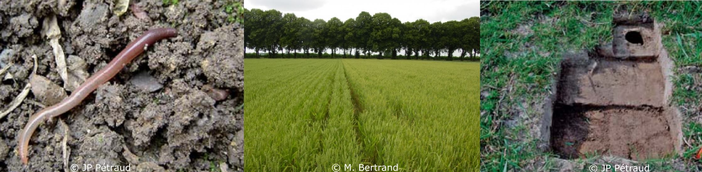 systèmes de culture (conventionnel, bas niveau d'intrants, biologique et sans travail du sol). Suivi des niveaux de production, des performances économiques, des émissions de GES, de la dynamique des organismes du sol...