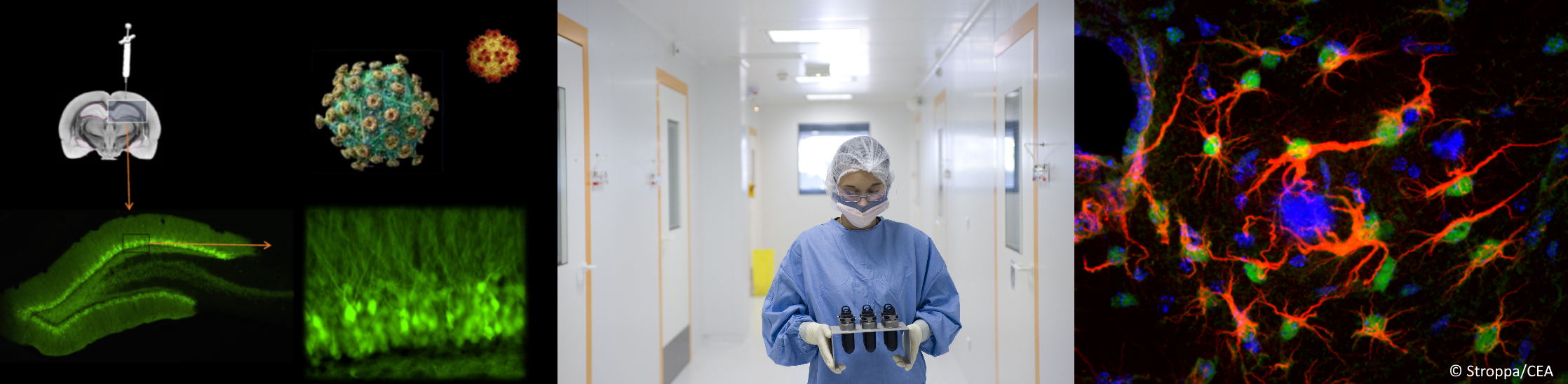La plateforme propose son expertise pour l'élaboration de vecteurs viraux dérivés d'AAV (adeno-associated virus) et de lentivirus, leur production et leur caractérisation. Ces vecteurs viraux permettent le transfert de gène de façon stable ou transitoire in vitro dans des lignées cellulaires ou des cultures primaires et in vivo dans un organisme entier (rongeur, primate non humain, etc.). Ils peuvent être utilisés pour surexprimer un gène d'intérêt, inhiber un gène endogène (shRNA), ou exprimer un gène rapporteur.