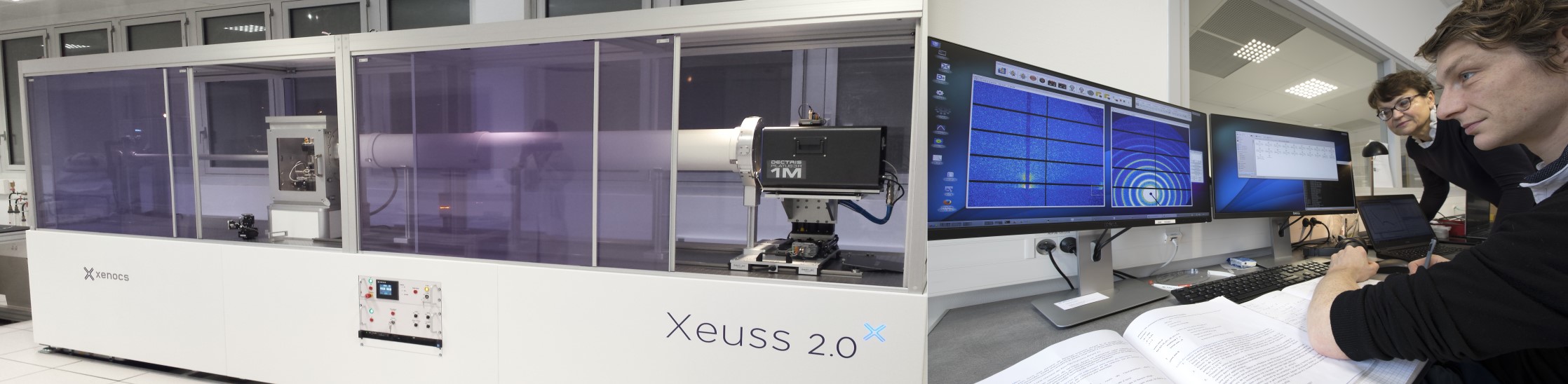 The LLB a installé dans le « SWAXSLab » du CEA Saclay un spectromètre de diffusion de rayons X haute résolution, un Xeuss 2.0 de la compagnie Xenocs. Cet équipement permet d’effectuer des mesures de diffusion aux petits angles (SAXS) et aussi en incidence rasante (GISAXS) ainsi que des mesures en réflectivité. Il est utile aux recherches sur les nanomatériaux, en matière molle, biologie. Il permet d’effectuer des études structurales de ces nanomatériaux en volume mais aussi en surface en donnant des informations sur les dimensions, les formes des molécules ou des objets et leur organisation. Les dimensions des objets étudiés varient de 50 nm à 0,5 nm. Cet équipement est opéré par une équipe d’experts en diffusion de rayonnement prêts à la collaboration scientifique. Il est complémentaire des outils de diffusion de neutrons opérés par le LLB mais aussi des 2 autres instruments de diffusion de rayons X du SWAXLab installé au CEA/IRAMIS/NIMBE à Saclay.